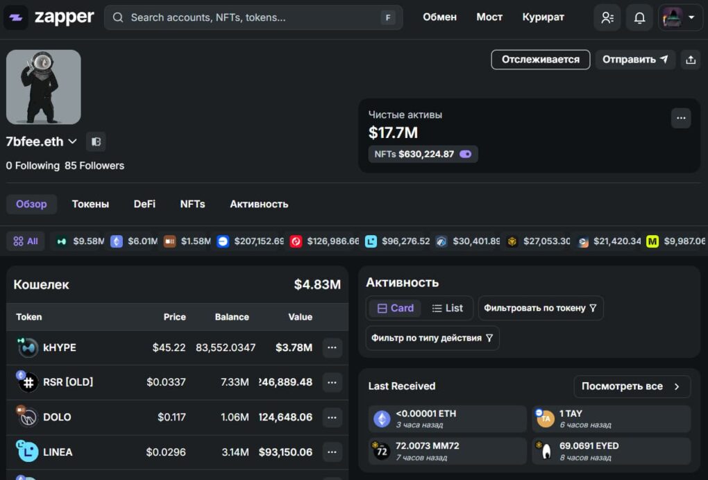 📌 Case example: An investor with 80% of their holdings in Ethereum DeFi finds Zapper perfect, but someone splitting assets between CEX and DeFi may struggle with its incomplete coverage.